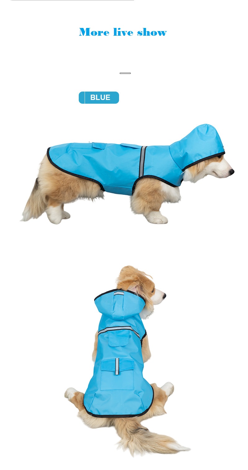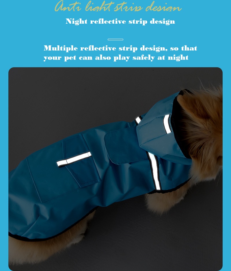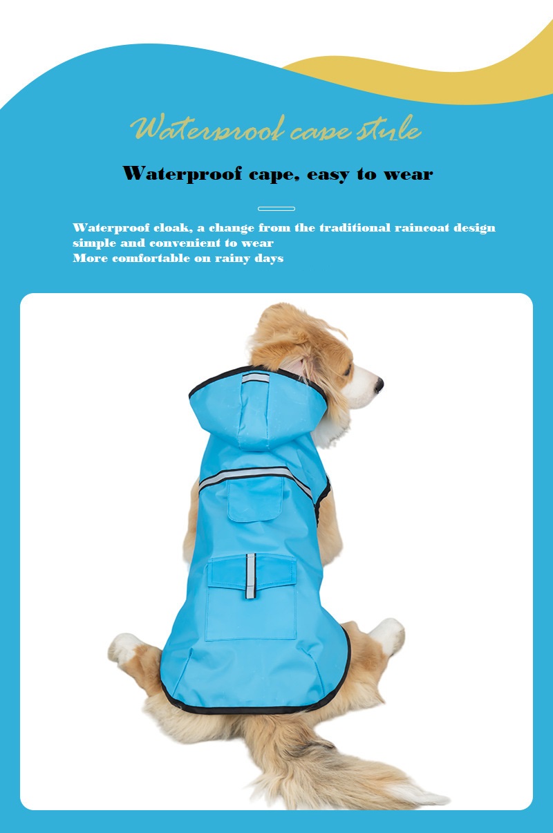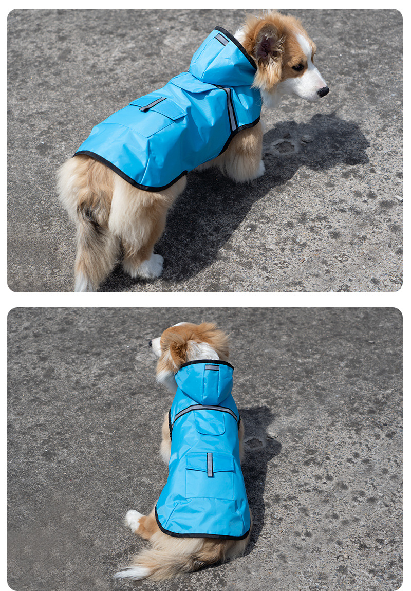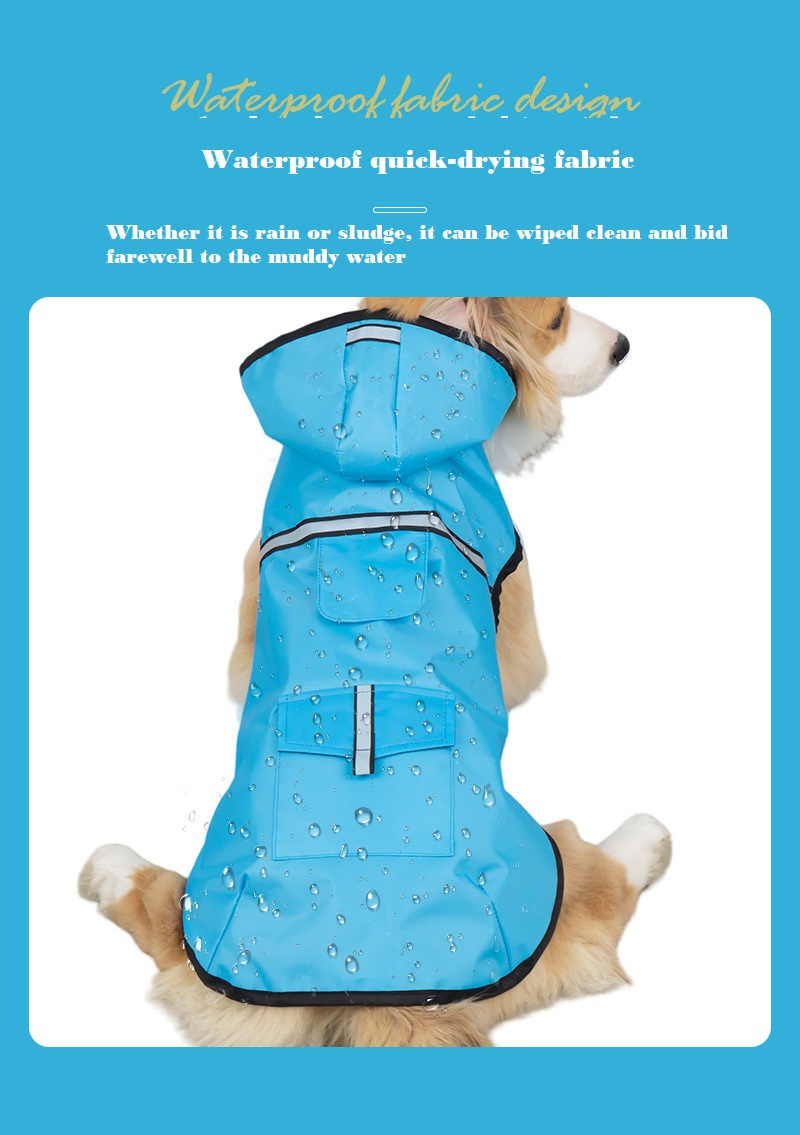 Classic Pet Dog RainCoat with Foldable Reflective Storage Pocket Dog Waterproof quick-dry jacket