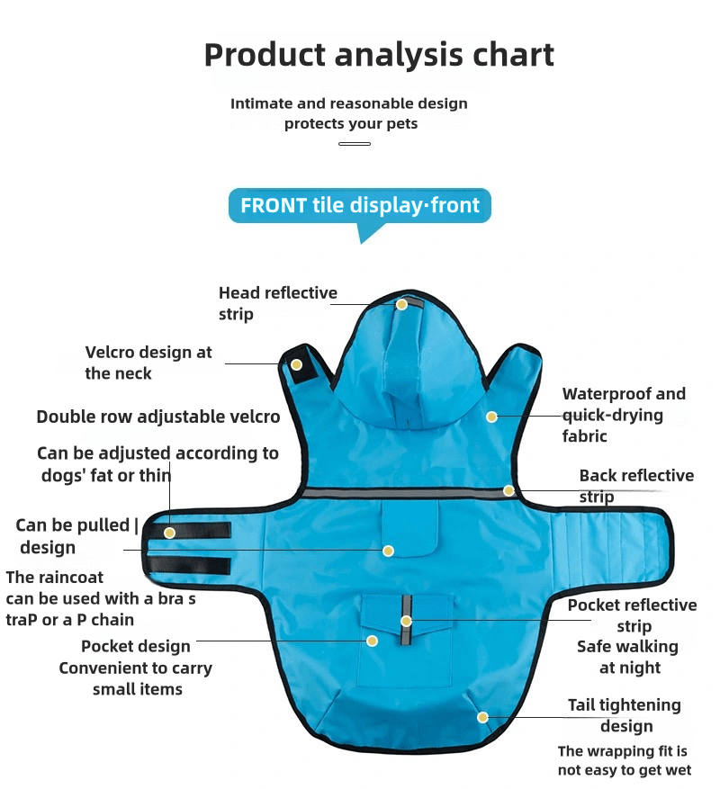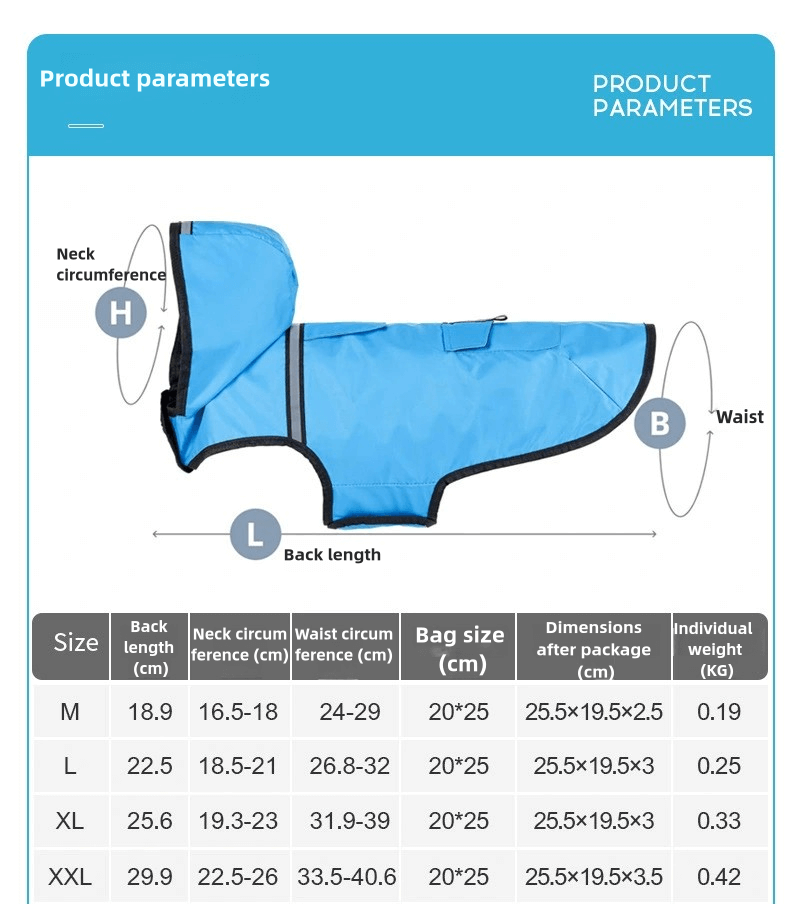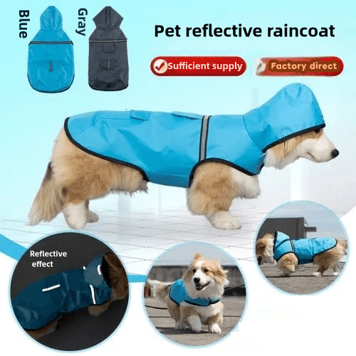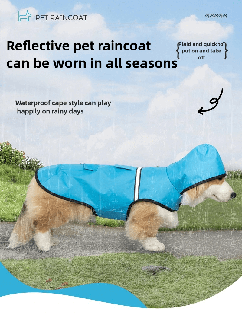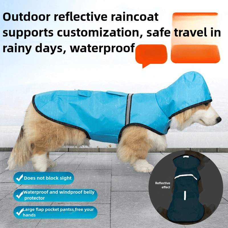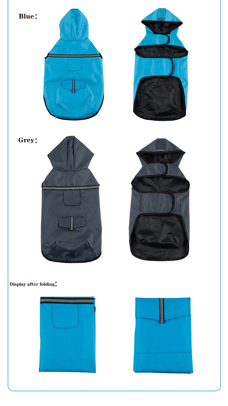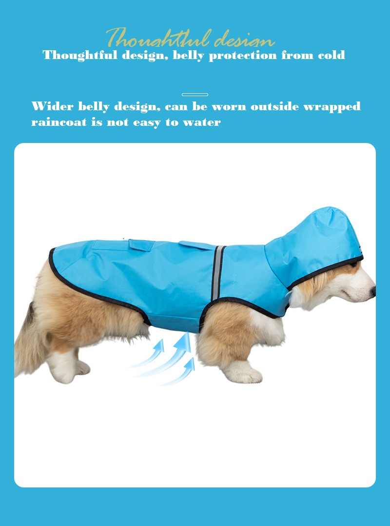Classic Pet Dog RainCoat with Foldable Reflective Storage Pocket Dog Waterproof quick-dry jacket