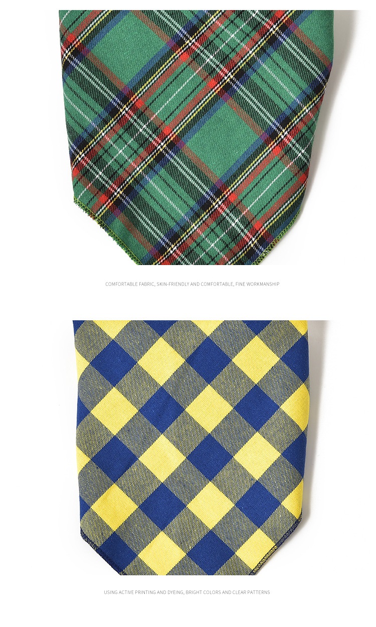 Introduce timeless style to your pet accessory line with our classic plaid dog bandana scarf, designed and manufactured for quality and comfort.