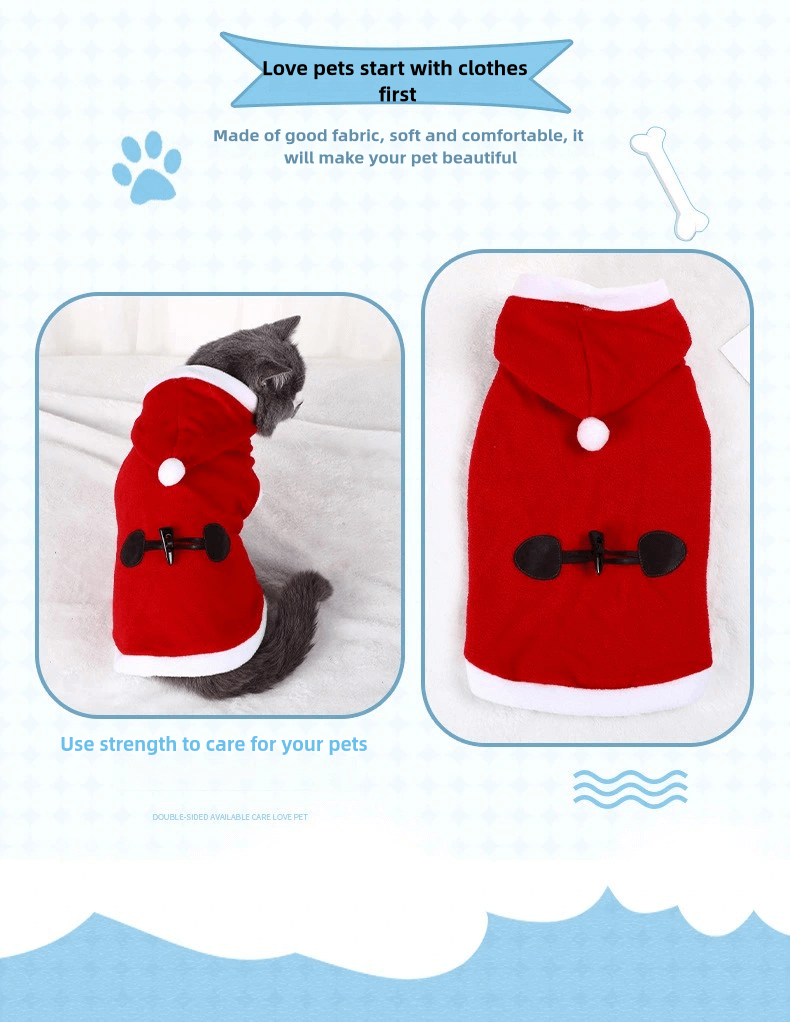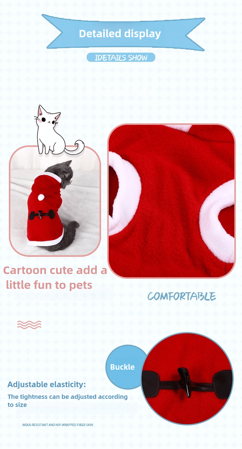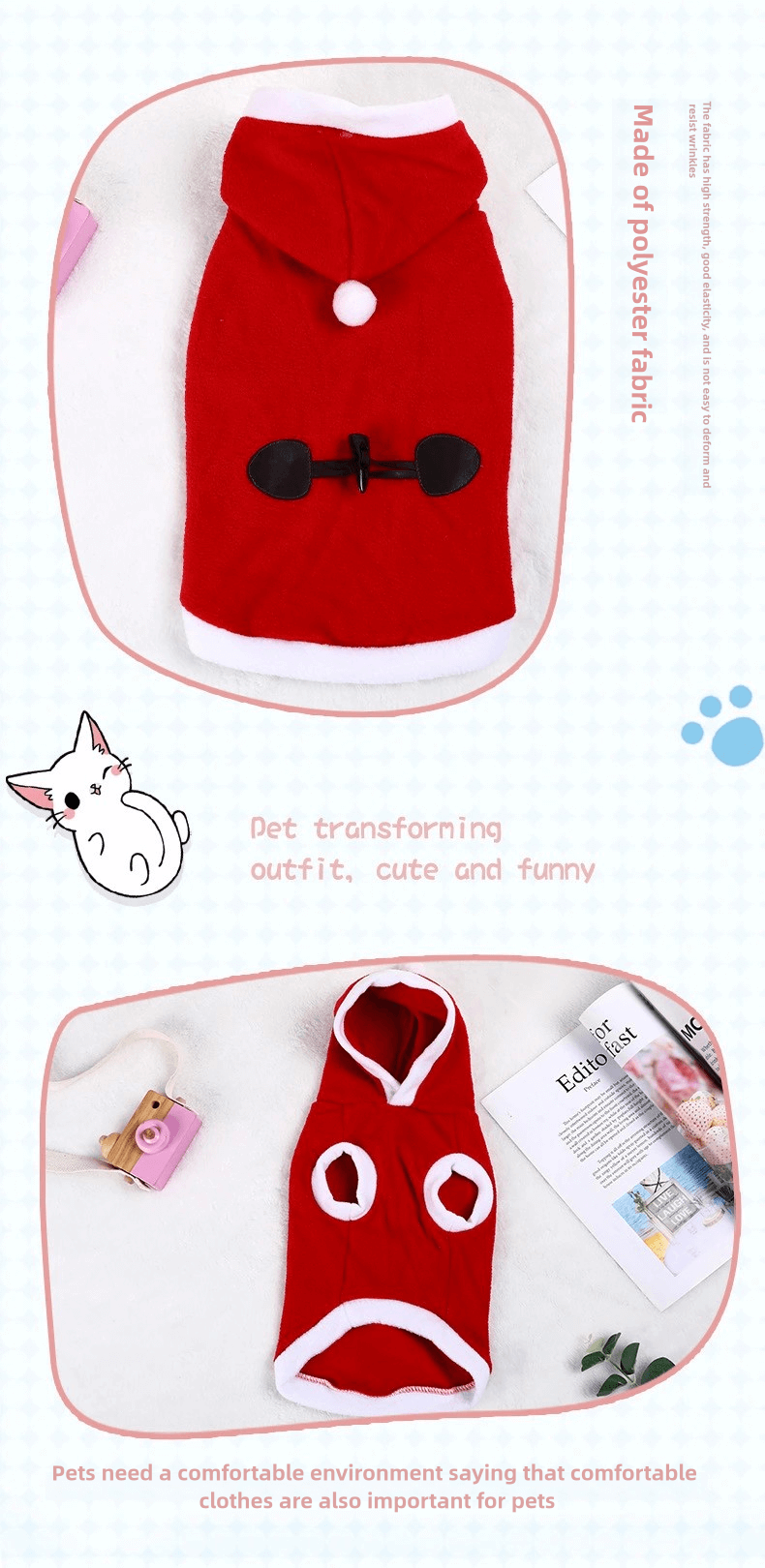 Winter cat casual Red Christmas Fleece hoodie warm pet costume