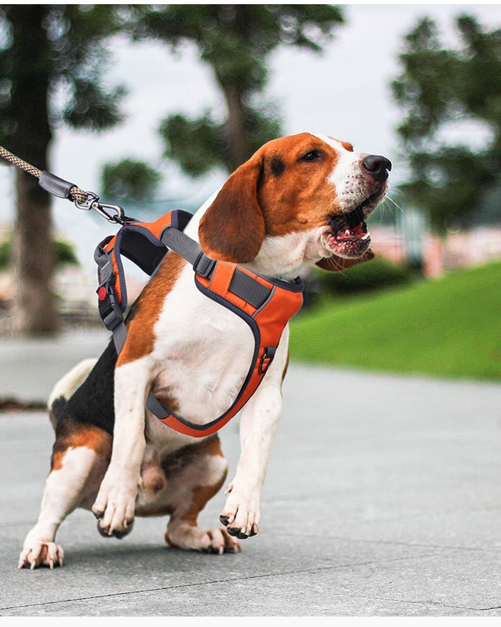 - After putting on the chest harness, the traction rope can be directly connected to the chest harness, and it does not need to be put on the dog’s neck, so that there is no worry that the dog will break free.